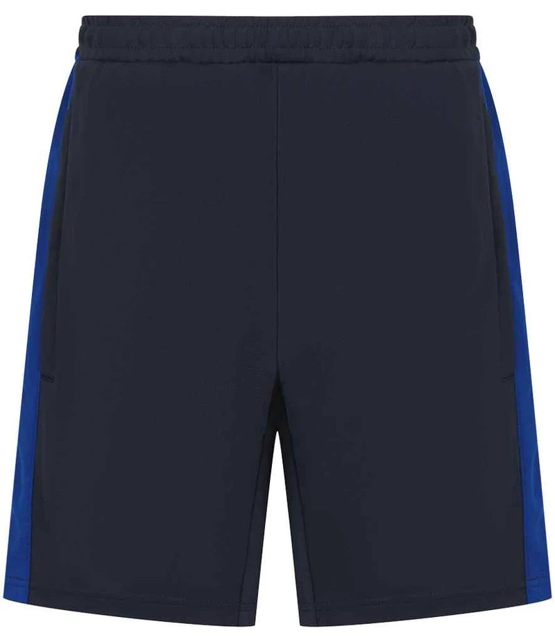 Finden & Hales Shorts. Navy with zipped pockets and Royal Blue Stripe. 40 degree wash, do not tumble dry